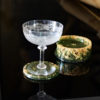 Ensemble de 4 dessous de verre ronds en résine époxy noire et traversée d’éclats dorés est le fruit du travail artisanal de Katia. Chaque pièce de ce lot est unique et originale.
